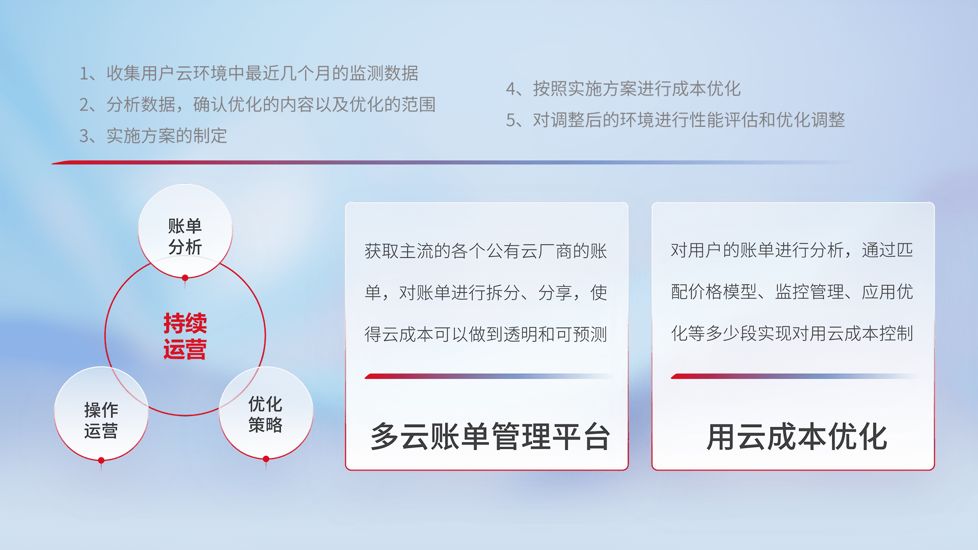 运用智能化工具分析云资源,,提供日常费用可视化工具,,,,自动账单拆分,,成本优化云上费用,,,,降本增效。。